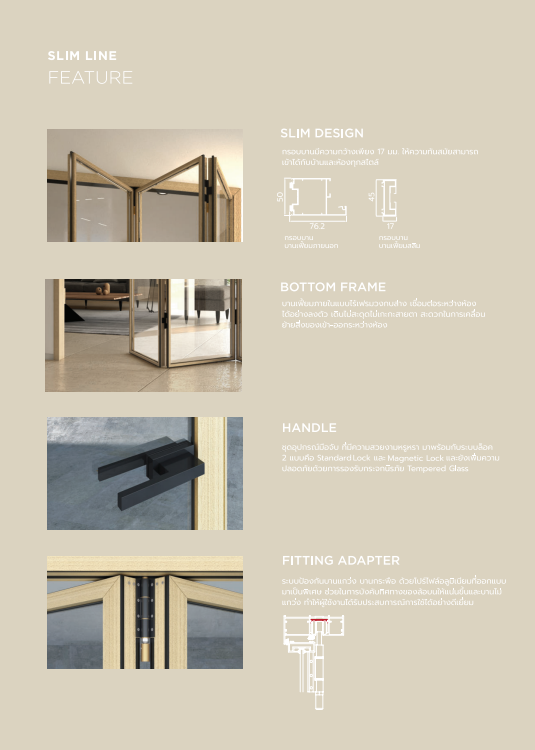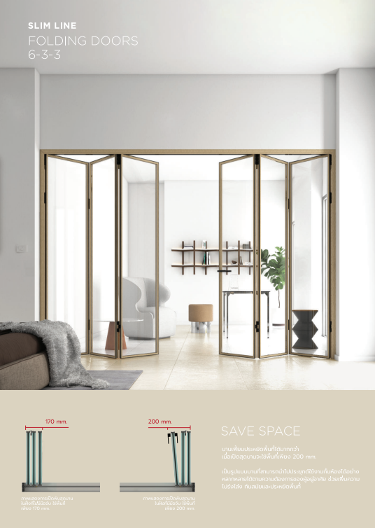 VDO Slim line folding doors | บานเฟี้ยม สลิมไลน์ จากตังน้ำ