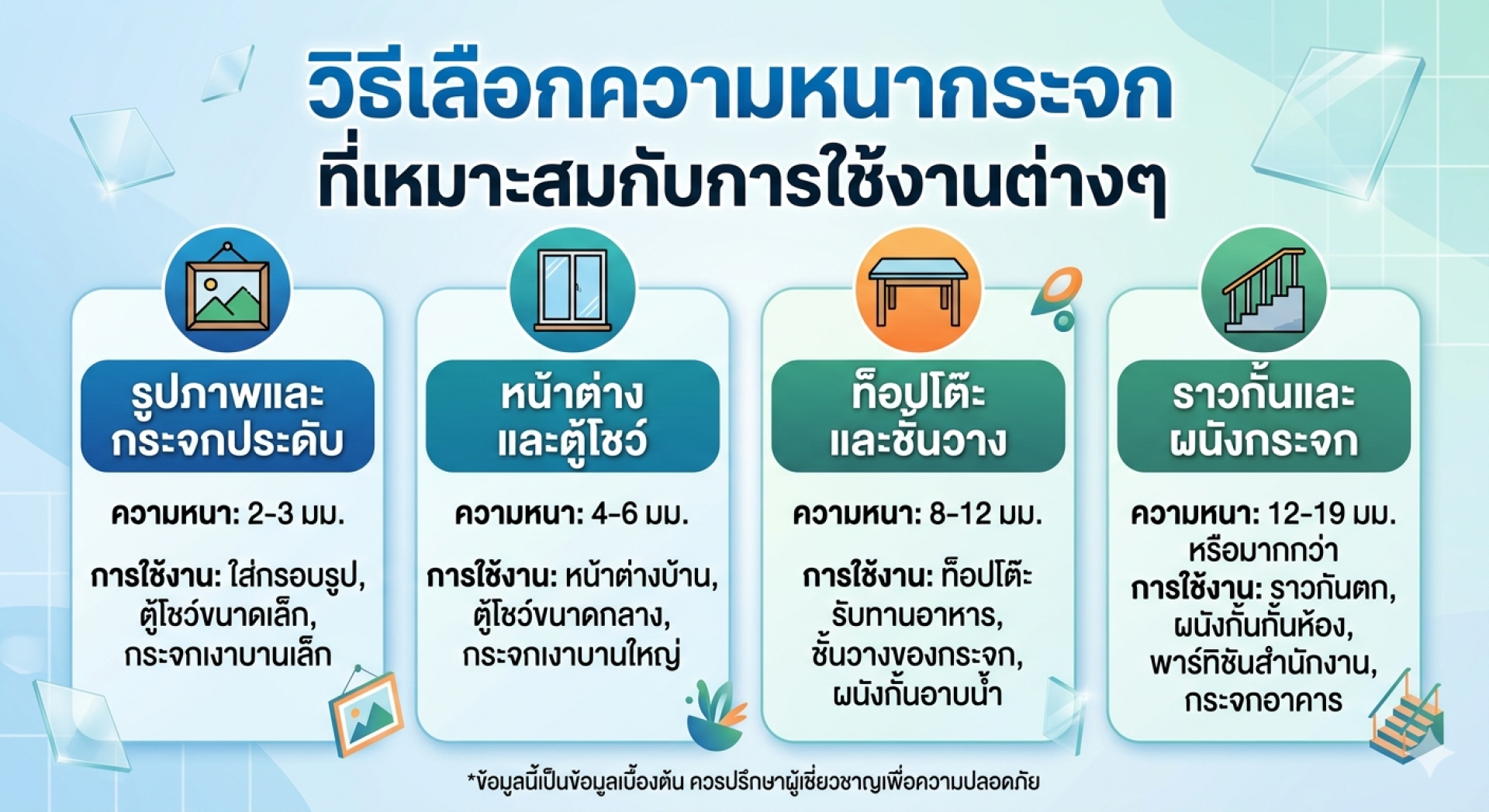 วิธีเลือกความหนากระจกที่เหมาะสมกับการใช้งานต่างๆ